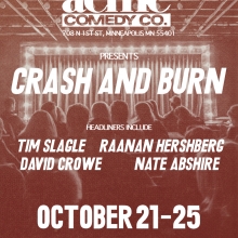 If you've ever wondered how comedians come up with new material, this is the event for you! Crash and Burn is back this year and better than ever. Four comics step on the stage starting Tuesday with material created only hours before. Over the course of the week they are tasked with refining, rewriting, and creating a brand new twenty minute set with the help of their fellow comics and spectators.